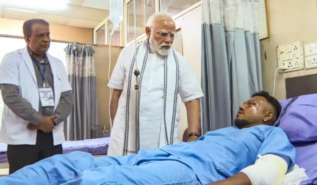 मुलाकात की। प्रधानमंत्री ने सिविल अस्पताल में भर्ती कराए गए एकमात्र जीवित यात्री से भी मुलाकात की। पीएम मोदी के साथ केंद्रीय नागरिक उड्डयन मंत्री और स्थानीय अधिकारी भी मौजूद रहे, जिन्होंने हादसे के बारे में सूचना दी।
