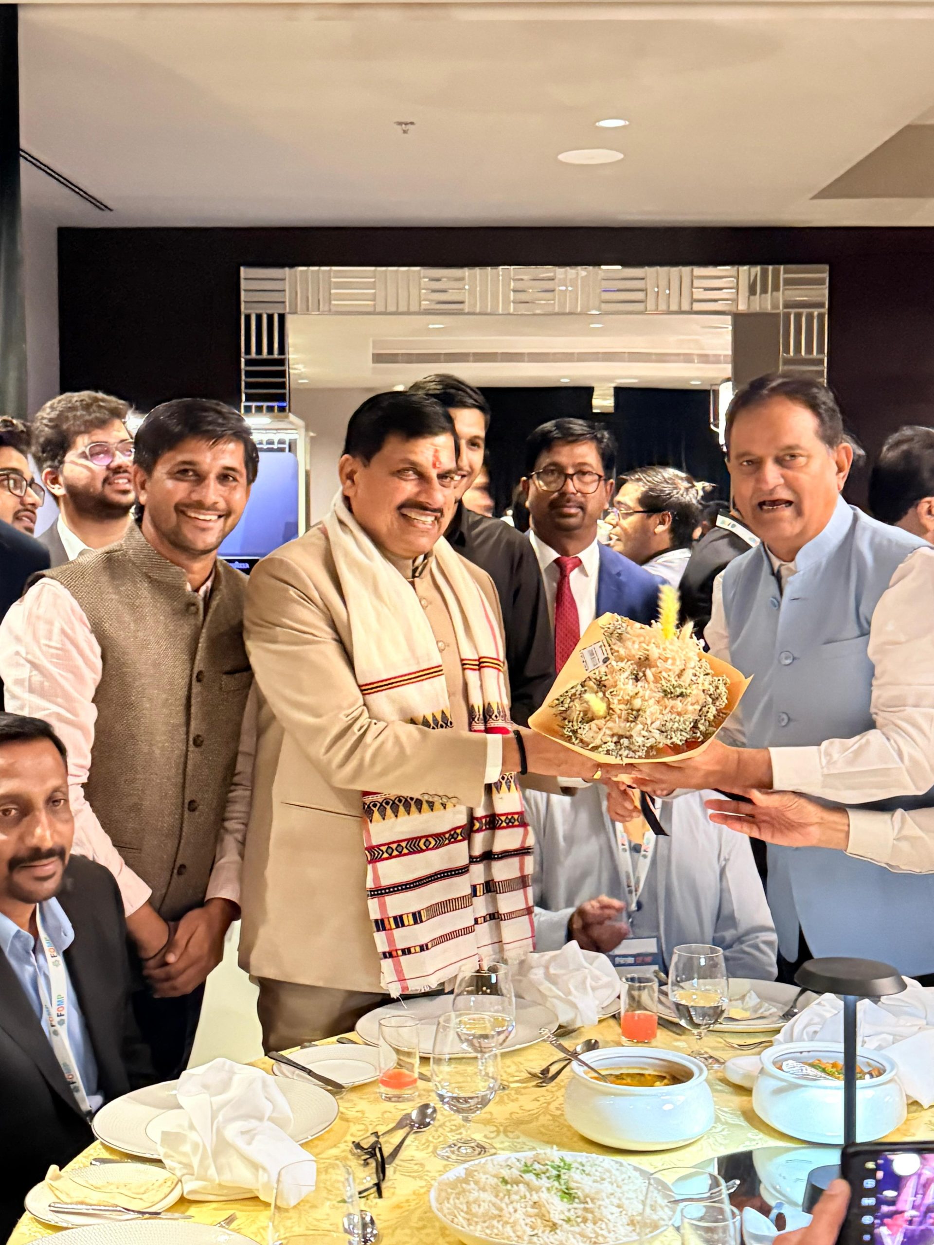 इस विशेष अवसर पर राजस्थान फाउंडेशन दुबई चैप्टर की ओर से अध्यक्ष श्री अमराराम जांगिड, श्री केशर कोठारी एवं श्री पेम्पाराम सुथार ने राजस्थान का प्रतिनिधित्व किया और हमने राजस्थान की हस्तकला, हैंडीक्राफ्ट और राजस्थान की कला संस्कृति के बारे में चर्चा की ! प्रतिनिधिमंडल ने मुख्यमंत्री डॉ. मोहन यादव से शिष्टाचार भेंट कर उनका आत्मीय स्वागत किया।