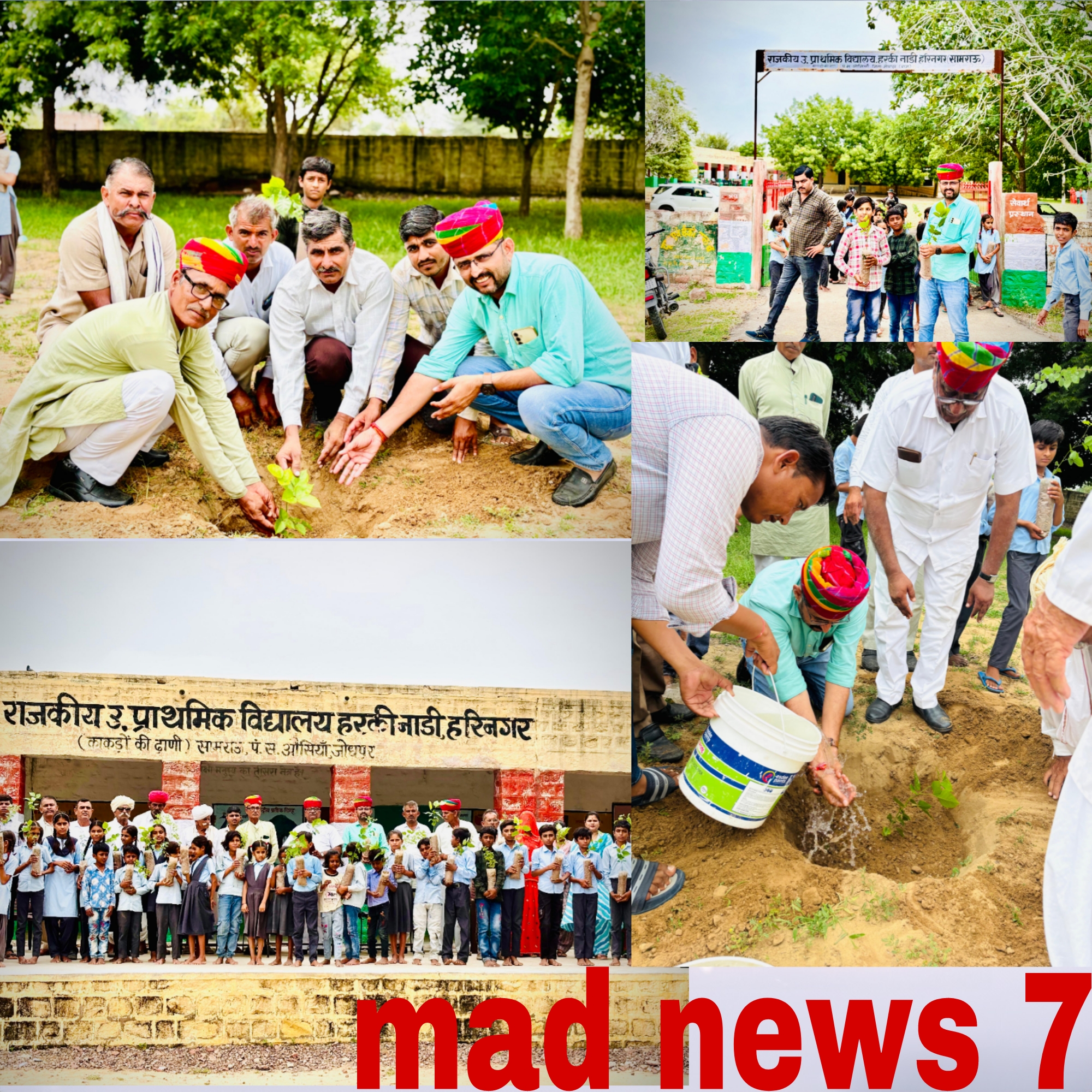 ग्राम पंचायत सामराऊ के राजकीय उच्च प्राथमिक विद्यालय हरी नगर में पौधारोपण किया गया बच्चों और बच्चियों ने प्रत्येक पौधे को पन पाने का जीमा लिया बीजेपी मंडल अध्यक्ष मनोहर बिश्नोई  सामराऊ सरपंच प्रतिनिधि पर्वत सिंह भाटी