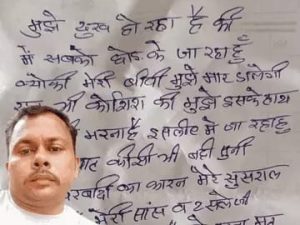 मुझे दुख हो रहा है कि मैं सबको छोड़ कर जा रहा हूं। क्योंकि मेरी बीवी मुझे मार डालेगी, रात में भी कोशिश की। मुझे इसके हाथ से नहीं मरना है। इसलिए मैं जा रहा हूं। मेरी बात किसी ने नहीं सुनी। मेरी बर्बादी का कारण मेरे ससुराल वाले हैं। मेरी सास, साले पालाराम और बृजलाल है। अंत में लिखा है कि मुझे ढूंढना मत।